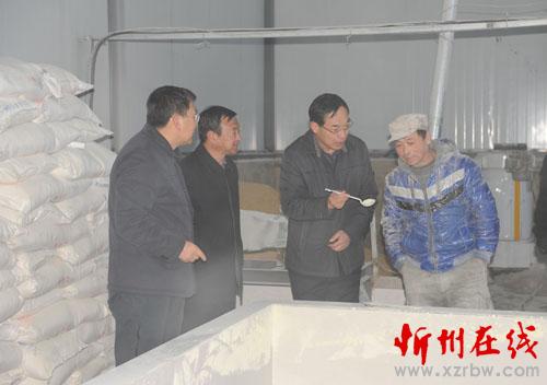 圖為縣領導在眾發(fā)養(yǎng)殖場加工車間調(diào)研指導