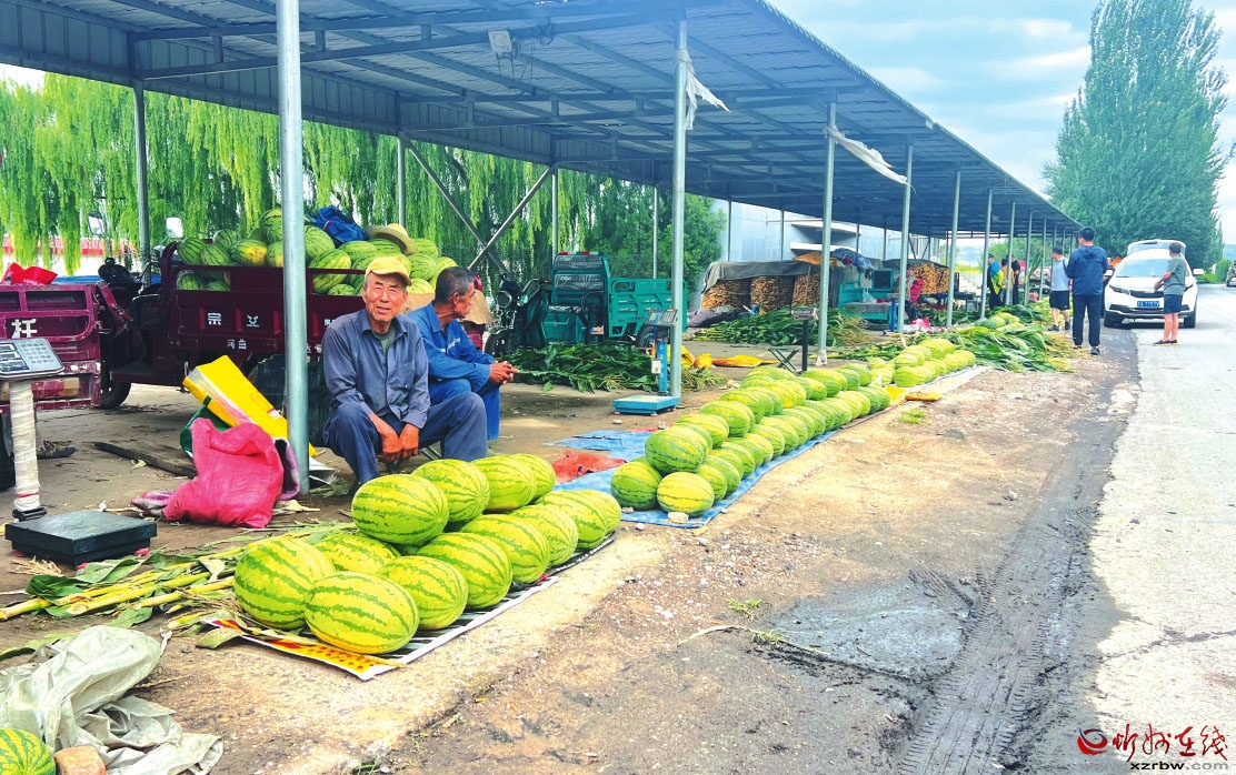 市場(chǎng)有回響,品質(zhì)過(guò)硬銷(xiāo)路旺。在村里的瓜果交易市場(chǎng),75歲的鄔培林?jǐn)偽磺?,一排排個(gè)頭飽滿(mǎn)的西瓜格外顯眼。有著多年種植經(jīng)驗(yàn)的他對(duì)市場(chǎng)行情了如指掌:“西瓜上市半個(gè)多月了,剛開(kāi)始賣(mài)兩元一斤,現(xiàn)在是6角一斤,正在陸續(xù)降價(jià)?!彪m然價(jià)格隨上市時(shí)間有所回落,但西瓜品質(zhì)好不愁銷(xiāo)路。