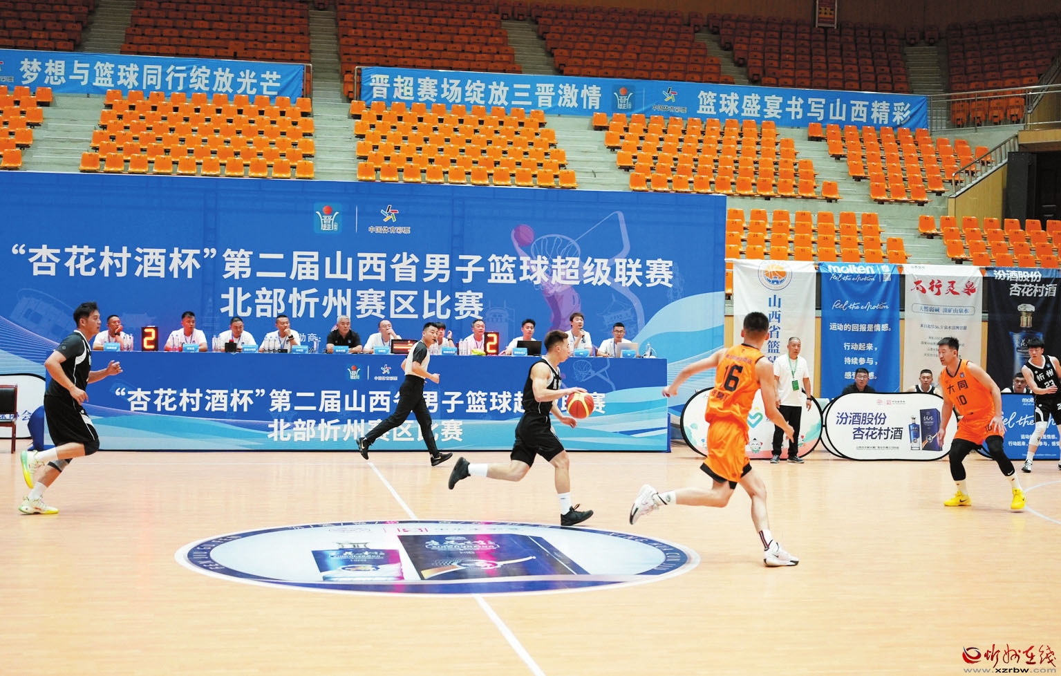 8月7日至9日,“杏花村酒杯”第二屆男子籃球超級(jí)聯(lián)賽北部忻州賽區(qū)的精彩賽事在跤鄉(xiāng)體育館火熱開展。忻州市公安局代表隊(duì)作為主場隊(duì)伍,接連迎戰(zhàn)晉中市代表隊(duì)與大同市代表隊(duì),為現(xiàn)場觀眾奉獻(xiàn)了兩場極具觀賞性的籃球盛宴。圖為比賽現(xiàn)場。(吳杰攝)