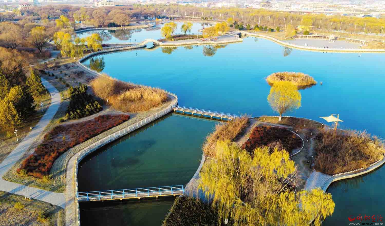 初冬的代縣滹沱河濕地公園湖水澄澈