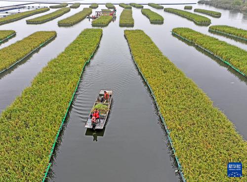 近日,安徽省淮南市鳳臺縣顧橋鎮(zhèn)采煤沉陷區(qū)50畝漂浮式水稻迎來豐收。當?shù)胤e極探索采煤沉陷區(qū)綜合治理開發(fā)利用,在采煤沉陷區(qū)推行水面漂浮水稻種植、水下網(wǎng)箱養(yǎng)魚、水上光伏電站等多種發(fā)展模式,科學利用好采煤沉陷區(qū)。