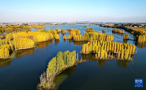 初冬時節(jié),在河北省邢臺市隆堯縣亦城村泜河沿岸,樹葉金黃,與水面、河岸相映襯,勾勒出一幅美麗和諧的自然畫卷。