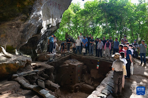 11月8日,考古專(zhuān)家在三亞落筆洞遺址觀察發(fā)掘現(xiàn)場(chǎng)。(新華社記者 郭程 攝)