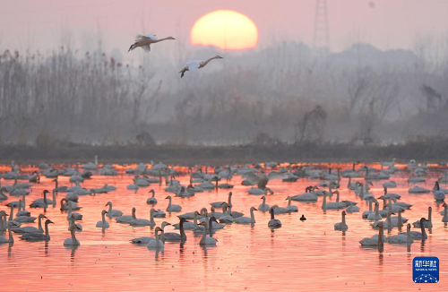 冬季,大批候鳥南遷到湖南省岳陽市屈原管理區(qū)東古湖濕地越冬。它們或悠然游弋在濕地淺水中,或振翅翱翔在濕地上空,勾勒出一幅靈動(dòng)和諧的生態(tài)畫卷,成為當(dāng)?shù)囟找坏漓n麗的風(fēng)景線。