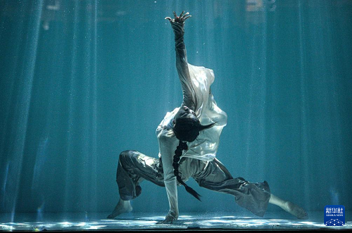 1月14日,舞者在2026中國(guó)極限舞蹈表演賽期間進(jìn)行水下舞蹈表演。(新華社記者 蒲曉旭攝)
