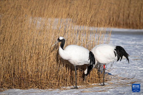 冬日時節(jié),黑龍江扎龍國家級自然保護(hù)區(qū)內(nèi)白雪皚皚,丹頂鶴在寒風(fēng)中覓食,上演一幅鶴舞冬日的純凈畫面。