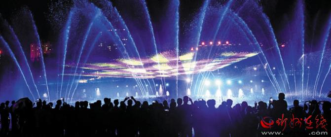 公園在注重園林、景觀建設(shè)的同時,突出主題文化內(nèi)涵的展現(xiàn),湖水噴泉、觀賞果園、主題植物園、階梯花臺等特色園林具有觀賞性,園內(nèi)還配套建有遺山文化館、張拉膜廣場、健舞劇場、休閑茶吧、咖啡館等群眾休閑活動場所,是又一惠及民生的心靈家園。圖為8月1日晚,市民在遺山公園噴泉廣場觀賞絢麗多彩的噴泉燈光秀。劉紀(jì)森 智芝龍 白曉明 胡 煒 攝