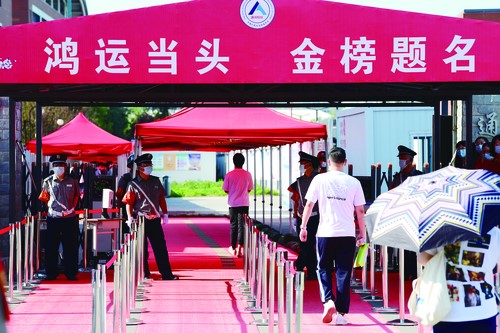 在北京市人大附中通州校區(qū)高考考點(diǎn),考生正步入考場(chǎng)。 中國(guó)婦女報(bào)·中國(guó)婦女網(wǎng)記者 楊睿/攝