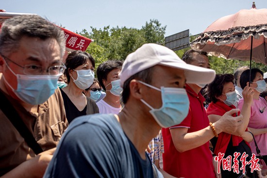 7月7日上午,北京市第八十中學門口,高考語文考試結束后,等待考生的家長們。中青報·中青網記者 李雋輝/攝