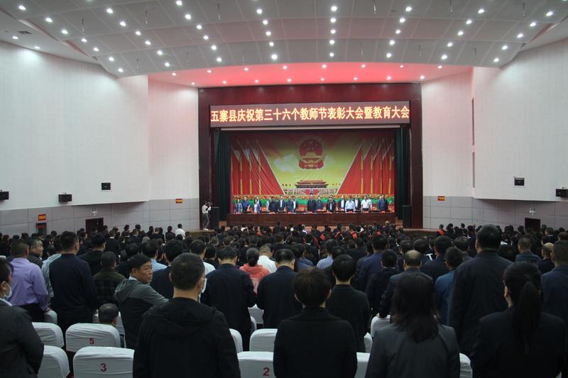 縣四大班子全體領導、關工委主任、公檢法主要領導、各鄉(xiāng)(鎮(zhèn))黨委書記、鄉(xiāng)(鎮(zhèn))長,辦事處主任、縣直黨政機關事業(yè)單位主要負責人、駐五單位負責人、忻州師院五寨分院、新聞媒體;教育局全體人員、全縣中小學校長和書記、幼兒園園長、受表彰的先進單位代表、模范個人共500余人參加會議。