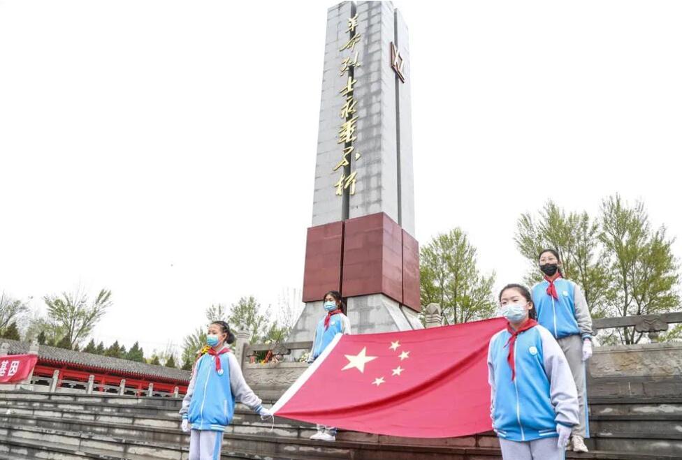 “我們是共產(chǎn)主義接班人,繼承革命先輩的光榮傳統(tǒng)……”少先隊(duì)員清脆的歌聲清遠(yuǎn)悠揚(yáng),深切表達(dá)著對先烈們的悼念、緬懷之情。