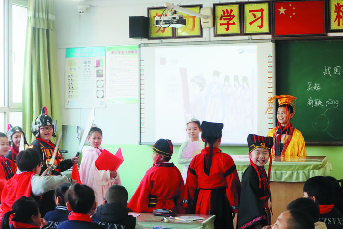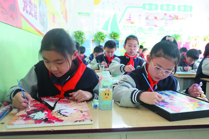 冬日暖陽(yáng)下,忻州市實(shí)驗(yàn)小學(xué)校園里一派生機(jī)勃勃的景象。武術(shù)訓(xùn)練場(chǎng)上,孩子們正在認(rèn)真扎馬步、練拳術(shù),一招一式打得虎虎生威,眼睛里閃爍著堅(jiān)毅和自信的光芒。百人腰鼓隊(duì)排著整齊的隊(duì)伍,伴著音樂的節(jié)奏不停變換著步伐,鼓槌上的紅綢子上下舞動(dòng),看得人眼花繚亂?;ㄊ交@球挑戰(zhàn)籃球極限,展示籃球技術(shù)和表演的完美結(jié)合?;犹K中,孩子們?cè)诃h(huán)擺的繩索中做著各種跳躍動(dòng)作……操場(chǎng)上,熱火朝天,教學(xué)樓里,每一間教室里都散發(fā)著濃濃的趣味性?!耙黄惨晦?,書寫堂堂正正中國(guó)字”“編程要注意邏輯關(guān)系”“三原色是哪些顏色呢?”……這是市實(shí)驗(yàn)小學(xué)每周三開展的第二課堂綜合實(shí)踐活動(dòng),也是孩子們最興奮最高興的校園時(shí)光。