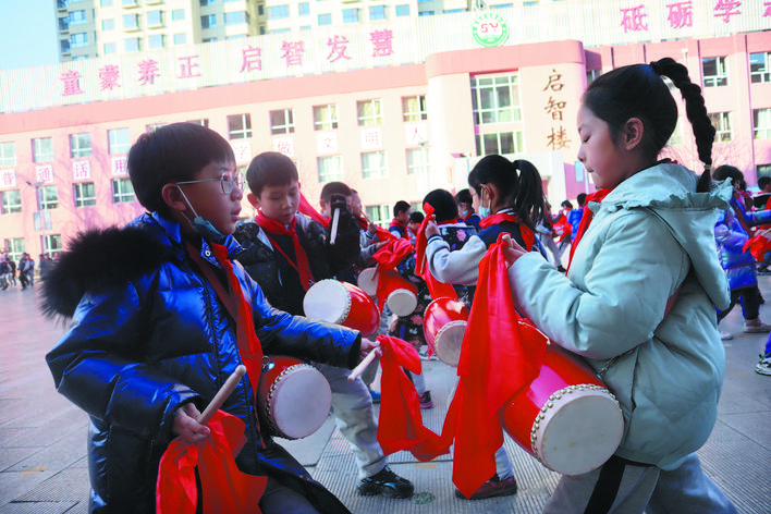 作為一種歷史悠久的傳統(tǒng)民族藝術(shù),腰鼓節(jié)奏歡快,鼓聲清脆悅耳。由孩子們展示這種藝術(shù)形式,更能張揚(yáng)出獨(dú)特的藝術(shù)性,同時(shí)練招式、講秩序,長(zhǎng)知識(shí)、練思辨。由來自全校的100名學(xué)生組成的腰鼓隊(duì)是市實(shí)驗(yàn)小學(xué)精心打造的一支規(guī)模相對(duì)較大的隊(duì)伍。董海燕老師是腰鼓隊(duì)的三位帶隊(duì)老師之一,還兼任198班的班主任,緊張的課堂教學(xué)之余,還要積極參與到教孩子們打腰鼓的第二課堂活動(dòng)中,董老師說,下一步,學(xué)校準(zhǔn)備打造千人腰鼓隊(duì),讓更多的孩子了解和掌握打腰鼓的技巧、技法,更好地弘揚(yáng)中華民族的傳統(tǒng)藝術(shù)。