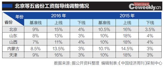 記者發(fā)現(xiàn),僅有天津、北京、山東、山西、內(nèi)蒙古等五省份發(fā)布了2016年工資指導線,并且多是下調(diào)基準線。