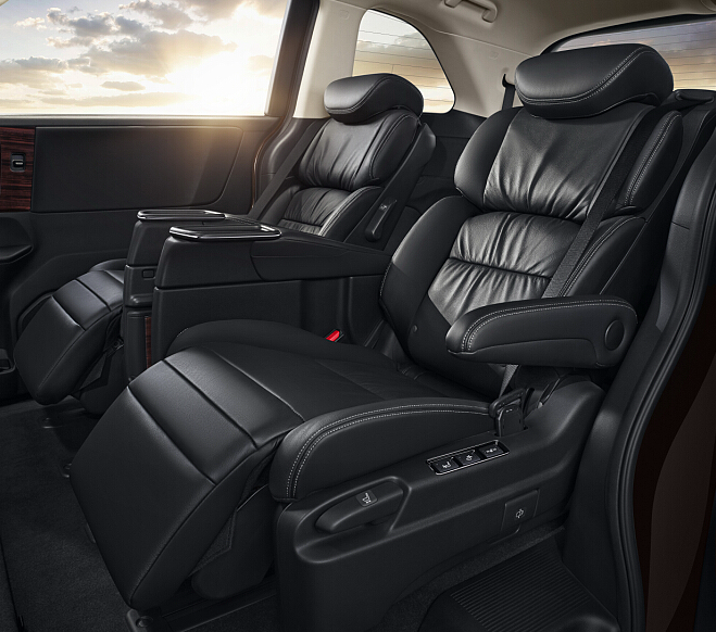 全新一代艾力紳第二排座椅堪比飛機(jī)頭等艙,可橫向、縱向方位調(diào)節(jié),實現(xiàn)多樣空間變化,而且還可電動調(diào)節(jié)椅背和腿托,手動調(diào)節(jié)肩部角度,從容享受舒適坐姿。且具備座椅加熱功能,實現(xiàn)了同級別最優(yōu)的乘坐舒適性,隱藏在二排的扶手型小桌板商務(wù)范十足,全系標(biāo)配的電動雙天窗大幅提升了乘坐者的舒適感。