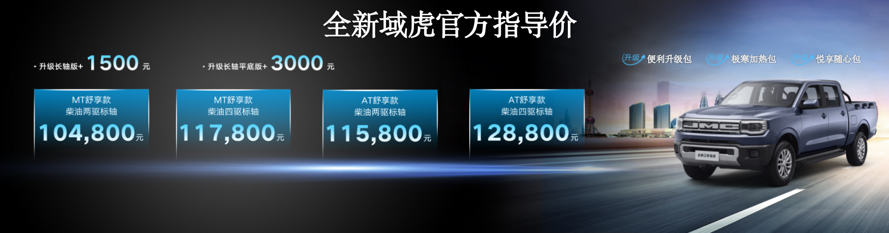 全新江鈴域虎最低起售價低至10.48萬元,并推出四重豪禮購車福利。