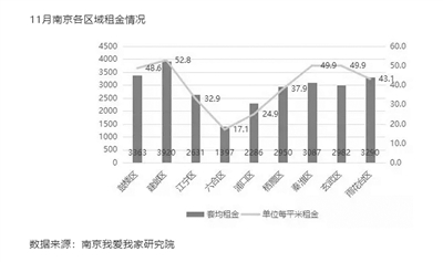 南京我愛(ài)我家研究院相關(guān)人士介紹,11月橋北、麒麟等套均租金較低的商圈成交熱度較高,重回南京租房熱門商圈的榜首和榜眼,套均租金分別為2310元和2034元,遠(yuǎn)低于全市平均租金水平。