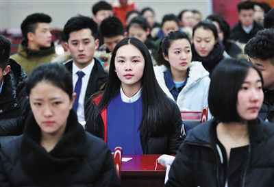 中國傳媒大學播音與主持藝術專業(yè)考場內(nèi)的這個女孩,干凈、懵懂,身上有種小動物一樣的氣息,讓人不由自主瞄上她。 薛珺供圖