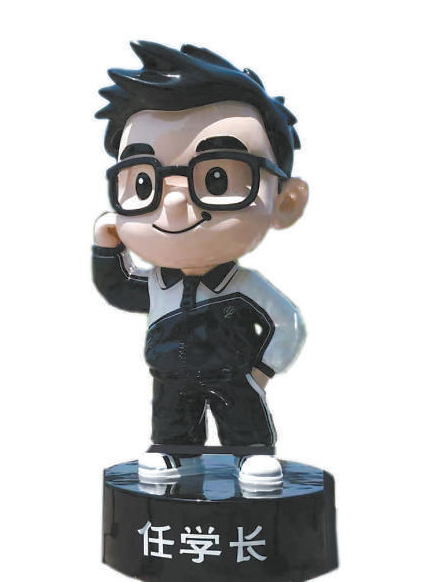 走進(jìn)北海公園南門,步行沒多遠(yuǎn),就能看見一個(gè)兩人高的公仔矗立湖邊。公仔底座上寫著“任學(xué)長(zhǎng)”,他戴著黑框眼鏡,弧形上翹的嘴型仿佛向游客笑著問好,沿著它背后的湖水碧波望去,遠(yuǎn)處就是北海的白塔,為寧靜典雅的古典園林增添了一絲可愛氣息。