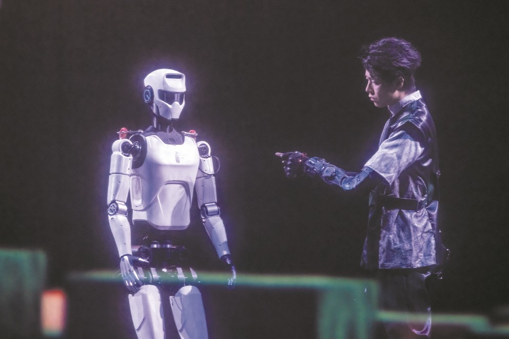 機器人戲劇《巨物之城》與觀眾見面。 秦彩斌攝 “這是采用麥克納姆輪,可以靈活走位、平移的機器人”“這是大家最關(guān)注的人性機器人”……上周,在國內(nèi)首部機器人戲劇《巨物之城》演出謝幕時,導(dǎo)演、上海戲劇學(xué)院數(shù)字媒體藝術(shù)專業(yè)教研室主任戴煒向現(xiàn)場觀眾介紹起這群特殊的演員。隨之舉行的一場熱鬧的“見面會”上,現(xiàn)場觀眾迫不及待地走上舞臺,和剛剛完成了80分鐘演出的機器人們合影留念。 這是發(fā)生在中國大戲院長三角城市戲劇節(jié)中的最“科幻”一幕,國內(nèi)領(lǐng)先的機器人走出實驗室和展廳,以接地氣、親和的方式來到普通人身邊。面對這樣的場景,人們不再那么陌生——2025春晚上,張藝謀導(dǎo)演的《秧BOT》讓人形機器人略顯滑稽地扭起秧歌;上半年,半程馬拉松也迎來人形機器人“跌跌撞撞”的身影?!拔覀冊谔剿饕环N可能性,試著模擬發(fā)生在未來的場景。”《巨物之城》藝術(shù)總監(jiān)、上海戲劇學(xué)院藝術(shù)科技與管理學(xué)院副院長沈倩對記者說,“無論對于機器人還是演藝產(chǎn)業(yè)來說,都具有破圈的意義?!闭\然,機器人仍在亦步亦趨地努力跟上人類的節(jié)奏,但其不斷前進的腳步已經(jīng)令人激動。面對“人機共生”的時代命題,上海邁出了全國舞臺實踐的第一步。 前沿科研成果的藝術(shù)“變身” 《巨物之城》的舞臺上,參演機器人的數(shù)量是人類演員的4倍——共8位。除了可以AI表情模仿的卓益得ULA-V2人形機器人(飾嵐),全球唯一同時滿足平衡、高效、智能、安全、經(jīng)濟等綜合優(yōu)勢的雙足機器人卓益得X02(飾T-758),擁有全向快速移動能力的卓益得全向輪雙臂舞臺定制樣機(飾堂吉訶德)外,還有四足機器狗、炫光飛行器等豐富多樣的機器人型號。 相比于一般戲劇,機器人戲劇的創(chuàng)排多了一個步驟——實驗室編程。去年年初,來自上海戲劇學(xué)院、上海理工大學(xué)機器智能研究院、上海卓益得機器人公司的主創(chuàng)團隊在實驗室度過了堪稱“痛苦”的一個月。聽到機器人戲劇,常有人問戴煒,資金投入是不是特別可觀。答案恰恰相反,過程中人力的投入反而是巨大的?!白鳛閲鴥?nèi)第一個吃螃蟹的人,創(chuàng)排階段遇到了此前難以想象的困難。”戴煒告訴記者,“當時,機器人的一個動作就需要半小時的編程時間,設(shè)定完還要進行調(diào)整,非常熬人,需要我們付出極大的專注力、想象力、意志力。” 要讓機器人變成演員,就先得為其提供范本。在排練廳里,熟悉各個機器人技術(shù)特點的戴煒反向模仿機器人,與真人演員對戲,幫助他找到表演參照體。而在側(cè)臺,每晚都有近10位技術(shù)人員在幕后操控機器人,用代碼和操作柄共同參與到表演中來。 機器人在舞臺接受“檢驗” 在《巨物之城》中,機器人是占據(jù)舞臺、勾連故事的主角。在未來時空的設(shè)定中,“堂吉訶德”“嵐”“麒麟臂”等共同幫助主角“賽博改造人”阿泰嘗試通過找尋記憶,重新建立與母親的情感聯(lián)系。無論是機械臂的笨拙擁抱、機器人打麻將、還是電子嗓音的歌謠演繹,都讓觀眾不禁思考——機器人是否有一天不再是工具,而是和人類一樣平等共生? 可以看到,《巨物之城》釋放出當下戲劇多元性探索的重要信號。“研究戲劇有三個傳統(tǒng)角度——空間、文本、演員,機器人戲劇便是我們從演員入手的一個探索?!鄙蛸槐硎尽”咎搨鹘y(tǒng)科幻作品中技術(shù)與人性對立的窠臼,以技術(shù)為載體,重新定義了“家庭”的情感內(nèi)涵。沈倩認為,好故事對未來機器人戲劇的發(fā)展起到格外重要的作用,“只有足夠扎實的劇本,才能撐起多形態(tài)的演出”。 從實驗室到排練廳、最后進入劇場,機器人的每一步都走得不容易。創(chuàng)排初期,機器人的動畫表情和硬件綁定,但每次機器人讀取硬件時會有一瞬間的黑屏,導(dǎo)致演出中動畫表情不連貫,而雙足機器人也曾因為手部動作幅度過大而踉蹌、跌倒?!霸趧觯^眾不會記得所有機器人做對的部分,但會記住錯的部分?!贝鳠樥f,“在舞臺上看上去笨笨的機器人,在展覽廳中卻是可以引發(fā)尖叫的存在。一進劇場,觀眾的期待值會直接拉高,希望看到它們和人類一樣表演。” 每次坐在觀眾席,戴煒的心總是懸著,就怕下一秒出現(xiàn)問題。他不否認,《巨物之城》仍存在需要克服的困難,但每次解決與實驗的過程無比重要。“就像舞臺比實驗室復(fù)雜許多,未來人類在現(xiàn)實生活中和機器人接觸情況更是如此。只有走出實驗室,才能讓機器人接受真正的檢驗?!?/p> 科研、創(chuàng)作、演出于一體,《巨物之城》團隊這樣定義當下機器人戲劇的定位。幾輪演出過后,劇組也發(fā)現(xiàn)了意料之外的觀眾群——具有旺盛好奇心和強烈共情能力的孩子,親子向也為日后機器人戲劇的發(fā)展提供了思路。 “目前的機器人表演處于科技實力展示的階段,未來某一天,當機器人具備真人演員同樣的美感,它的受眾將大大增加。”沈倩說。記者注意到,“關(guān)于未來的一種暢想”“機器人演出的未來戲”“從現(xiàn)在看見未來”……社交平臺上,“未來”二字高頻地出現(xiàn)在觀眾的留言中。機器人戲劇落在“戲劇”,也可以說落在“生活”。戴煒說:“舞臺上,我們讓機器人‘老去