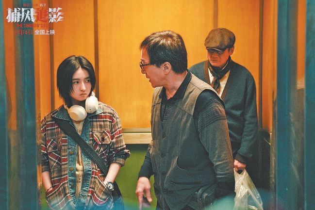 最終,《捕風(fēng)追影》在《跟蹤》基礎(chǔ)上,架構(gòu)了一個全新的時代背景。影片開始,犯罪團(tuán)伙居然在攝像頭和人工智能監(jiān)視下突然消失,讓警方的破案進(jìn)程一下子陷入僵局。關(guān)鍵時刻,成龍飾演的退休跟蹤專家黃德忠被警方重新啟用,他建議成立“跟蹤隊”,對可疑分子進(jìn)行實(shí)時跟蹤,故事由此展開。