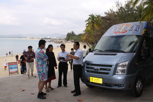 巡回審判車開(kāi)進(jìn)三亞旅游景點(diǎn)