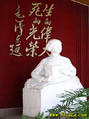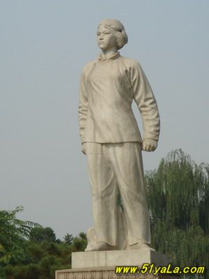 劉胡蘭(1930-1947),中國共產(chǎn)黨黨員,1946年參加革命,1947年山西軍閥閻錫山的軍隊突然襲擊時被捕,英勇不屈,在敵人鍘刀下壯烈犧牲。毛澤東曾在當(dāng)時《晉綏日報》上為之題詞:“生的偉大,死的光榮。”