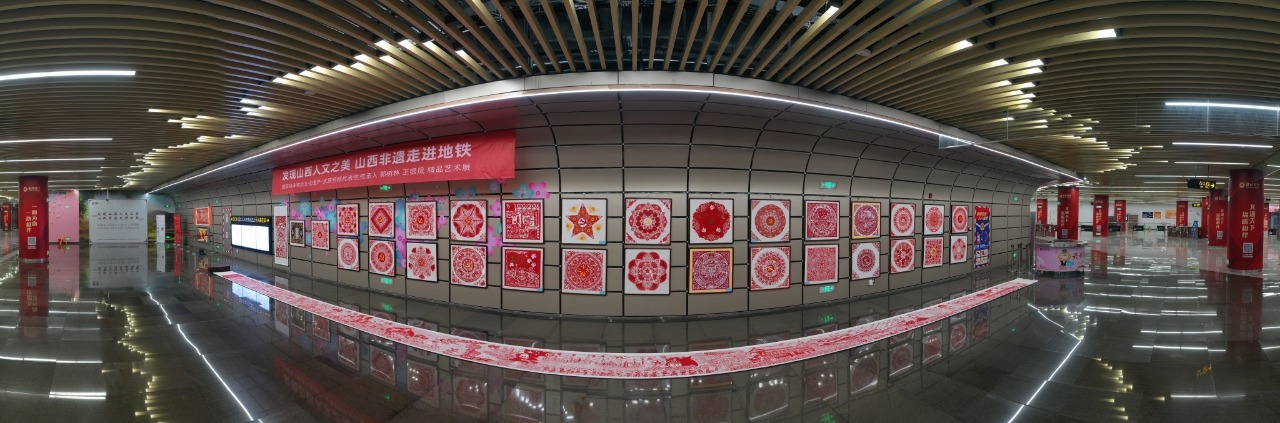 國家級(jí)非物質(zhì)文化遺產(chǎn)代表性項(xiàng)目太原剪紙?jiān)谔罔F2號(hào)線長風(fēng)街站展示。井宇豪 攝