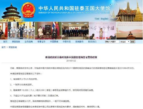 日前,泰國政府發(fā)布公告,對包括中國大陸和中國臺灣地區(qū)在內的21個國家和地區(qū)的游客實行的免除落地簽證費措施延長至2019年4月30日。