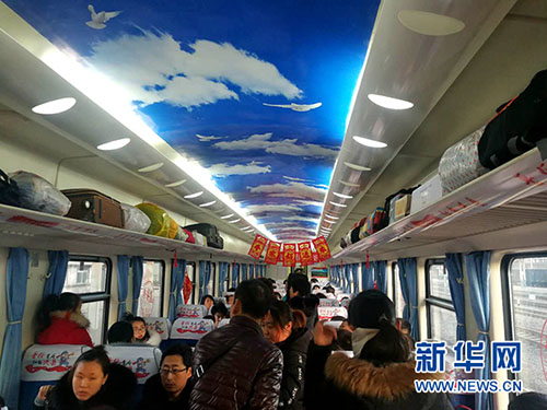 這是“蔡家崖”號(hào)列車車廂內(nèi)景(1月21日攝)。新華社記者 呂夢(mèng)琦 攝