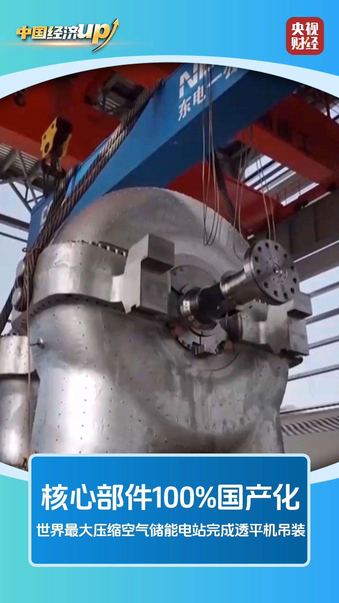 此次吊裝的透平機被稱為壓縮空氣儲能電站的“心臟”,它以分鐘為單位,可及時響應電網(wǎng)調(diào)峰需求,僅需10分鐘便可完成“沖轉(zhuǎn)到帶滿負荷”的全過程,將空氣膨脹的勢能轉(zhuǎn)化為電能。裝備實現(xiàn)了核心部件的100%國產(chǎn)化,是目前國內(nèi)單機出力最高、進氣流量最大的透平機。