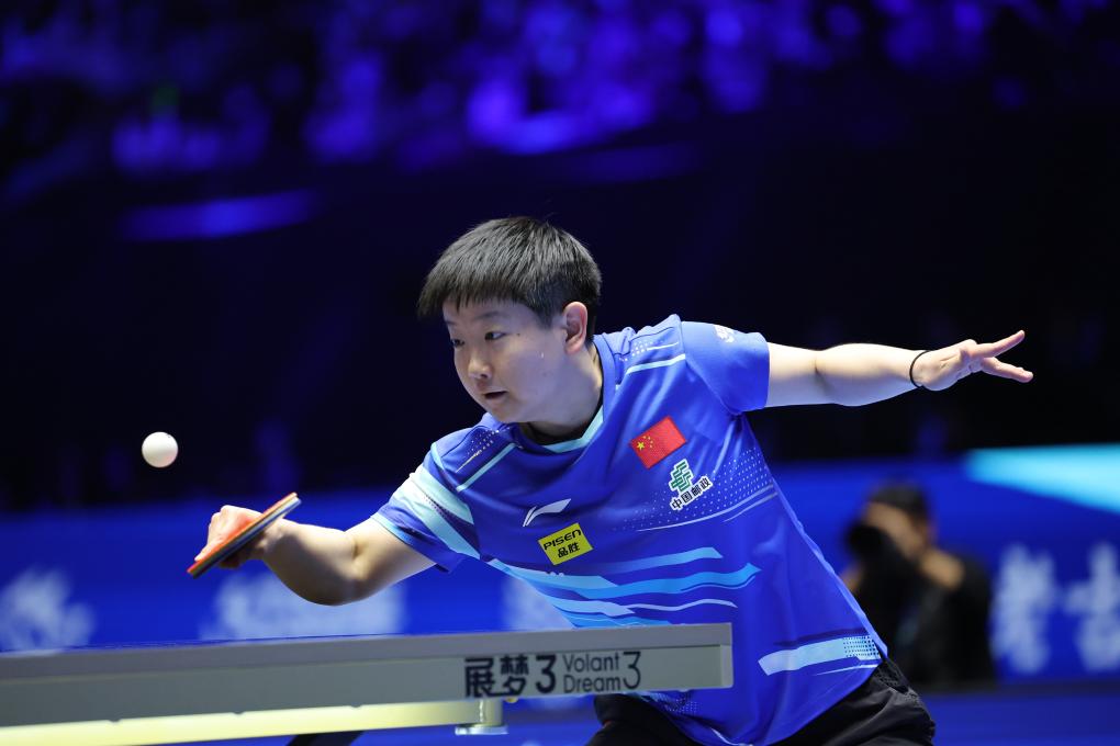 2月19日,孫穎莎在比賽中回球。新華社記者 梁旭 攝