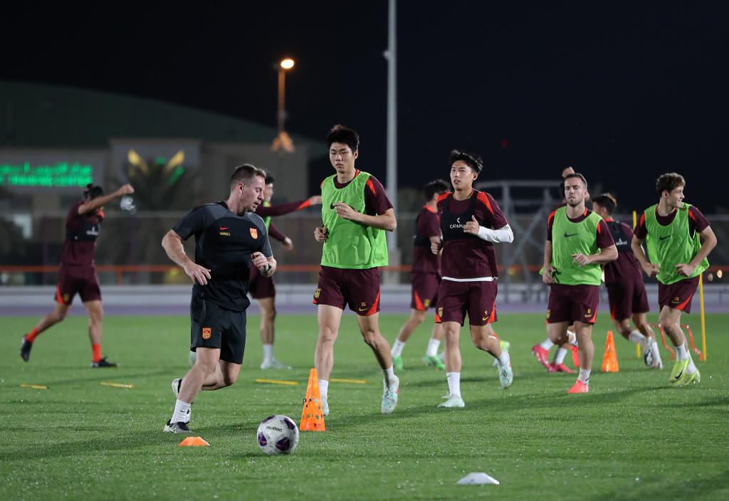 3月18日,中國國家男子足球隊在沙特阿拉伯首都利雅得進行賽前訓(xùn)練。新華社記者 王東震 攝