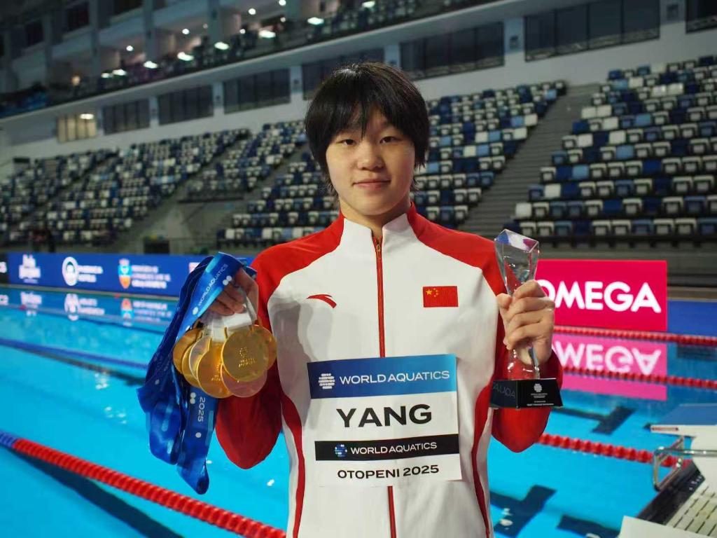 新華社布加勒斯特8月25日電(記者周欣、張改萍)在羅馬尼亞奧托佩尼舉行的世界青年游泳錦標(biāo)賽24日晚落幕,中國游泳隊(duì)的金牌和獎(jiǎng)牌數(shù)均創(chuàng)造世青賽歷史新高。18歲的楊佩琪成為最亮的“那顆星”,獨(dú)攬5金1銀1銅,個(gè)人刷新兩項(xiàng)賽會(huì)紀(jì)錄,榮膺賽事最佳女運(yùn)動(dòng)員(MVP)。