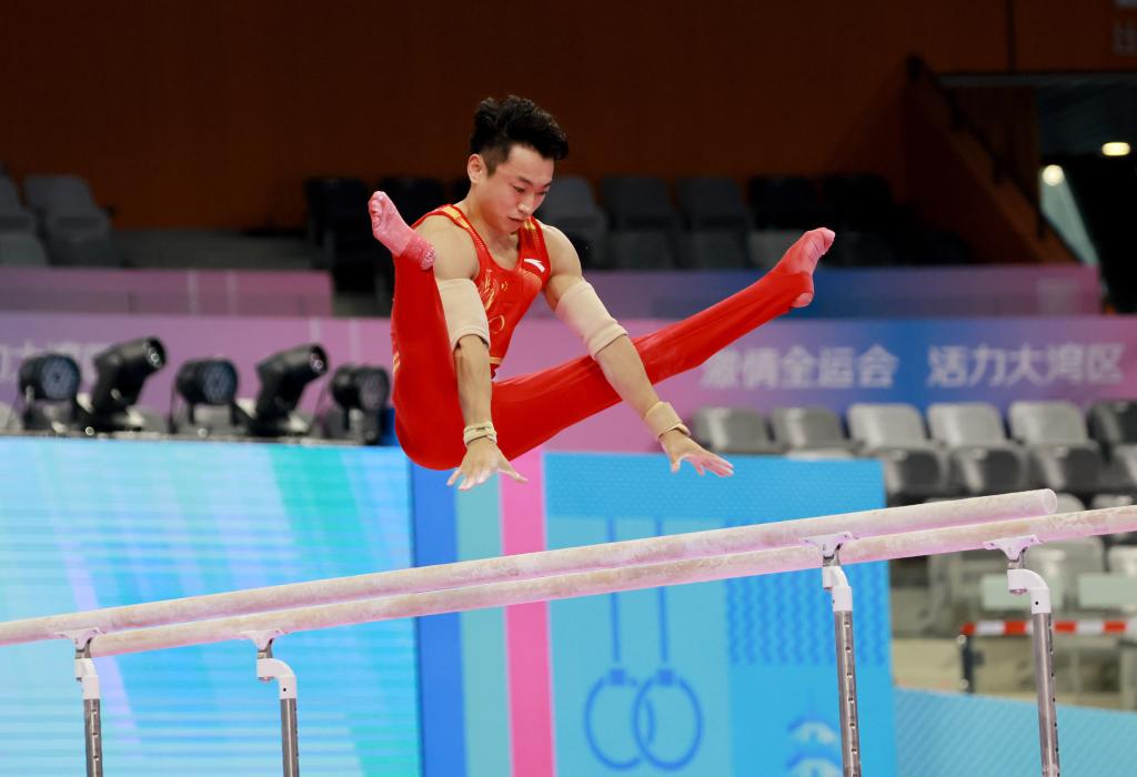 9月9日,鄒敬園在中國國家男子體操隊(duì)2025年世界體操錦標(biāo)賽第二次選拔測(cè)驗(yàn)賽中。新華社發(fā)(劉春林?jǐn)z)