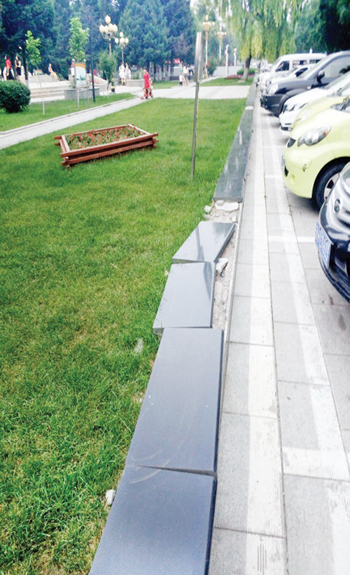 原平市市政府門前綠化帶西邊,草坪旁的地磚已損壞,急需修理,望相關部門關注。(一網友攝于7月6日)