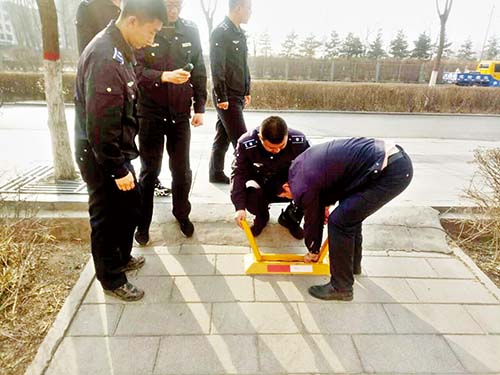 事后,該隊(duì)根據(jù)城市道路管理相關(guān)法律法規(guī),依法對(duì)設(shè)置的10個(gè)地鎖和11個(gè)隔離欄進(jìn)行拆除,還路于民,贏得了廣大市民的贊許。下圖為執(zhí)法人員正在拆除私自安裝的地鎖。(張志遠(yuǎn) 董子源)