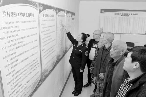 圖為環(huán)保干部為村民講解上墻公開的幫扶職責(zé)。金俊賢 攝