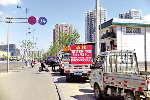 近日,記者在我市城區(qū)云中北路(原陶瓷廠附近)看到,近一百米的人行道上被出租貨運(yùn)車占了個(gè)滿滿當(dāng)當(dāng),行人被擠到了機(jī)動(dòng)車道上,存在安全隱患。希望相關(guān)部門(mén)加大對(duì)此路段的管治力度,還市民一個(gè)安全、暢通的出行環(huán)境。圖為停在人行道上的出租貨運(yùn)車 張志遠(yuǎn) 攝