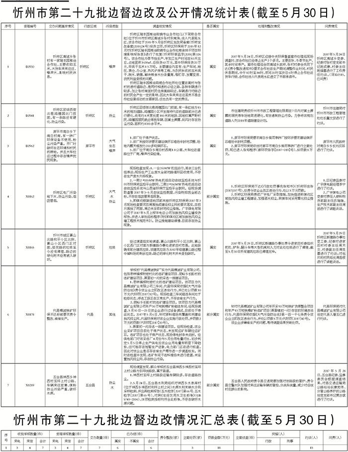 我市高度重視,立即組織查處,截至5月30日,督辦的群眾反映問題7件已辦結(jié)。其中,確認(rèn)屬實(shí)4件,部分屬實(shí)3件。對于屬實(shí)和部分屬實(shí)已辦結(jié)的環(huán)保問題,分別采取了相應(yīng)處理措施,其中罰款18萬元,對13名相關(guān)責(zé)任人進(jìn)行了責(zé)任追究。對7件群眾反映問題調(diào)查處理情況進(jìn)行了信息公開。