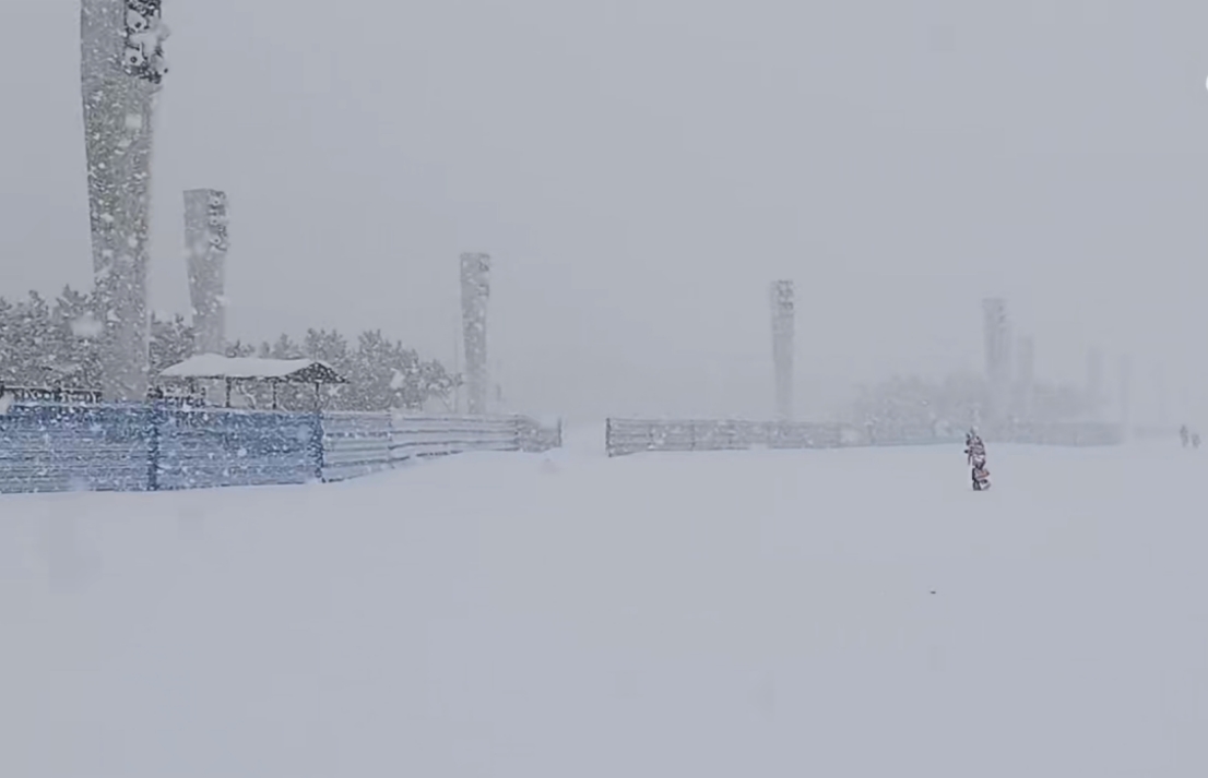 煙臺(tái)大學(xué)東門(mén)附近,冷流雪正在狂暴,宛如北極科考。微博網(wǎng)友視頻截圖