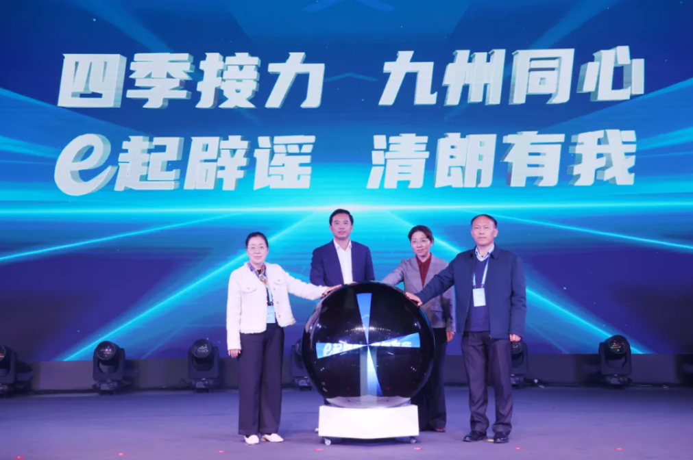 四季接力,九州同心;e起辟謠,清朗有我!第四季活動現(xiàn)場播放了2025網(wǎng)絡辟謠沙龍回顧視頻,再現(xiàn)了活動從河南的文明之源啟程,穿越廣西的山水清朗,沐浴齊魯?shù)娜屣L信義,最后相聚在“雄奇山水、新韻重慶”。 隨著河南省委網(wǎng)信辦副主任李麗、廣西壯族自治區(qū)黨委網(wǎng)信辦二級巡視員肖珊、山東省委網(wǎng)信辦總工程師赫叢慶、重慶市委網(wǎng)信辦副主任魏春代表四地網(wǎng)信辦點亮“網(wǎng)絡辟謠同心圓”,標志著2025網(wǎng)絡辟謠沙龍圓滿收官。