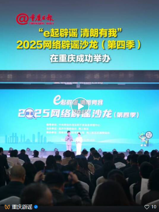 活動現(xiàn)場發(fā)布了《2025重慶網(wǎng)絡辟謠年度十大案例》《重慶網(wǎng)絡謠言治理研究報告(2025)》,以及重慶市“首批涉企網(wǎng)絡舉報辟謠工作直聯(lián)點”試點單位。