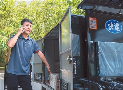 700專用號碼啟用后可方便消費者識別、提升快遞員、外賣員配送效率。在網(wǎng)約車行業(yè)推廣后,700專用號碼還將助力乘客精準(zhǔn)識別駕駛員來電,讓駕駛員接單更順暢,減少停車?yán)@行。圖為6月29日,陜西省西安市的一位快遞員正用手機聯(lián)系顧客,準(zhǔn)備派送快件。新華社記者 毛思倩攝