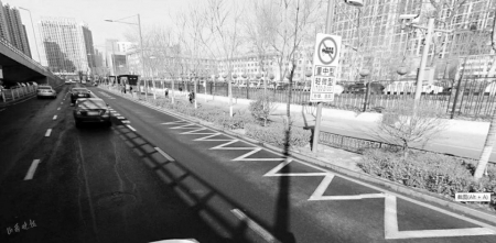 3、可變導向車道:在太原市有些路口,車道內側被畫上了一排“鋸齒”形狀的短線。相信有不少新手司機看到這條“鋸齒”狀的車道還是有些發(fā)蒙,不知道到底該怎么走。它主要出現在交叉路口,可依據不同時段車輛流量流向的特點,對流向進行靈活調控,變換車道的行駛方向,緩解交通壓力??吹竭@種車道,你也會看到LED可變車道的指示牌,根據指示走就行了。需要提醒大家的是,機動車在可變車道內不允許變道。