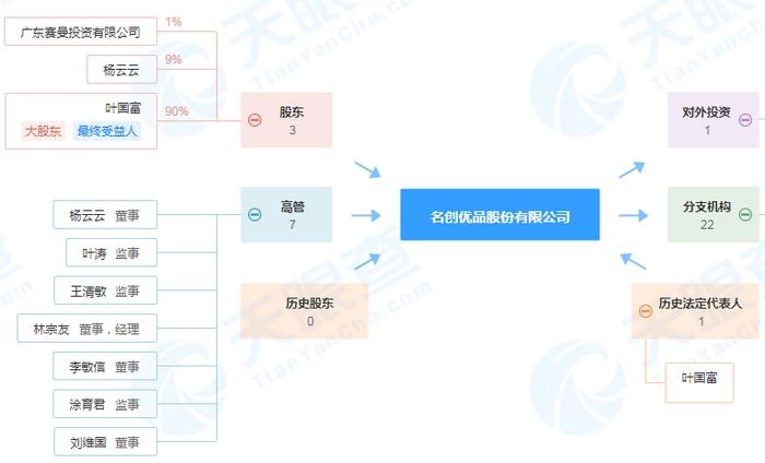 曾經的“哎呀呀”已經成了時代的眼淚,但在2013年,一個更強的名創(chuàng)優(yōu)品誕生了。天眼查顯示,名創(chuàng)優(yōu)品股份有限公司(簡稱“名創(chuàng)優(yōu)品”)的曾用名是哎呀呀飾品連鎖股份有限公司(簡稱“哎呀呀”),大股東、最終受益人是葉國富,其持股比例高達90%。