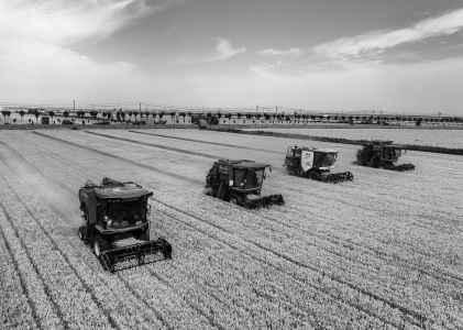 為確保麥?zhǔn)展ぷ黜樌_展,運(yùn)城市認(rèn)真落實(shí)機(jī)具調(diào)配、技術(shù)服務(wù)、應(yīng)急保障、安全生產(chǎn)等各項(xiàng)工作。共調(diào)集5500余臺(tái)小麥?zhǔn)崭顧C(jī)、4萬多臺(tái)拖拉機(jī)和玉米播種機(jī)投入到“三夏”生產(chǎn)中。晴好的天氣也十分配合,為小麥?zhǔn)崭钐峁┝擞欣麠l件。在田間地頭,一臺(tái)臺(tái)收割機(jī)來回穿梭,將簇簇麥穗卷入機(jī)倉,顆顆飽滿的麥粒傾瀉而出,呈現(xiàn)出一派繁忙而有序的豐收景象。