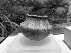 高淳博物館的二樓是一個(gè)“通史”展,從6300年前薛城聚落開始說(shuō)起。彩陶罐、黑斑玉鐲、黑陶杯、螺螄、貝殼……這些“寶貝”都是從高淳薛城遺址出土的,它們已經(jīng)有6300歲了。這些陶器,造型優(yōu)美,尤其是黑陶杯,造型堪稱時(shí)尚,杯口還特意設(shè)置了喝水的凹槽。