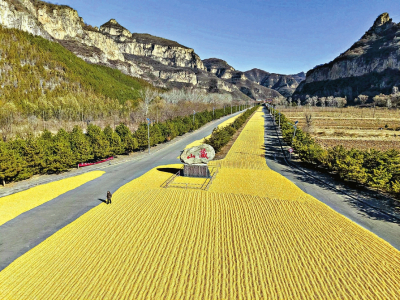 山西晚報(bào)·山河+訊(記者 溫麗芳)近日,在陽(yáng)泉盂縣藏山景區(qū),一條由金黃玉米鋪就的“黃金大道”,在青山、藍(lán)天的映襯下,構(gòu)成一道別樣的冬日風(fēng)景。據(jù)了解,藏山景區(qū)主動(dòng)騰退千米道路,為周邊農(nóng)戶(hù)提供免費(fèi)晾曬場(chǎng)地,讓豐收的玉米與巍峨的太行山水相映成畫(huà),繪就了一幅農(nóng)旅共融的生動(dòng)圖景。