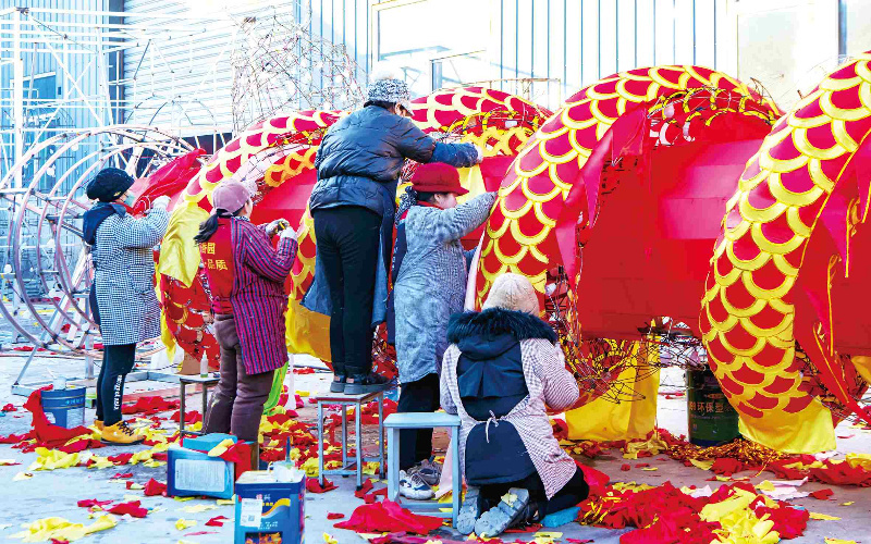 慶豐祥花燈廠工程師高海旺說:“我們?cè)诒A舸謇飩鹘y(tǒng)的花燈制作技藝之余,還積極革新。今年龍?jiān)鼗艉苁苁袌?chǎng)的追捧,不僅是省內(nèi),周邊省份也有很多訂單?!?/p>